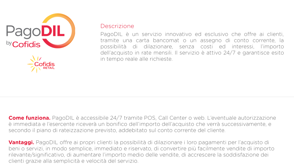 Sono accettate le principali carte di credito ed il pagamento con Bancomat